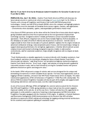Daimler Truck North America to Showcase Latest Innovations for Canadian Customers at Truck World 2026