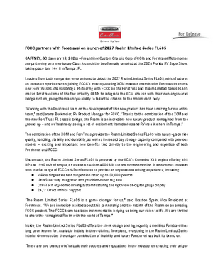 Freightliner Custom Chassis Corp. (FCCC) is a leading manufacturer of diesel chassis for the motorhome industry. FCCC supports its industry-leading chassis with a comprehensive suite of services, including 24/7 factory direct support, a nationwide service network with more than 400 dealers in the U.S. and Canada, and an official customer-support mobile app. FCCC also manufactures chassis for the work truck, walk-in van, school bus and shuttle bus markets. Freightliner Custom Chassis Corporation is a subsidiary of Daimler Truck North America LLC, a Daimler Truck company. For more information, visit fcccrv.com or call 1-800-FTL-HELP.