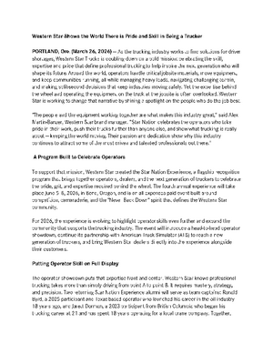 PORTLAND, Ore. (March 26, 2026) — As the trucking industry works to find solutions for driver shortages, Western Star Trucks is doubling down on a bold mission: celebrating the skill, expertise and pride that define professional trucking to help inspire the next generation who will shape its future. Around the world, operators handle critical jobsite materials, move equipment, and keep communities running, all while managing heavy loads, navigating challenging terrain, and making split-second decisions that keep industries moving safely. Yet the expertise behind the wheel and operating the equipment on the truck at the jobsite is often overlooked. Western Star is working to change that narrative by shining a spotlight on the people who do the job best.